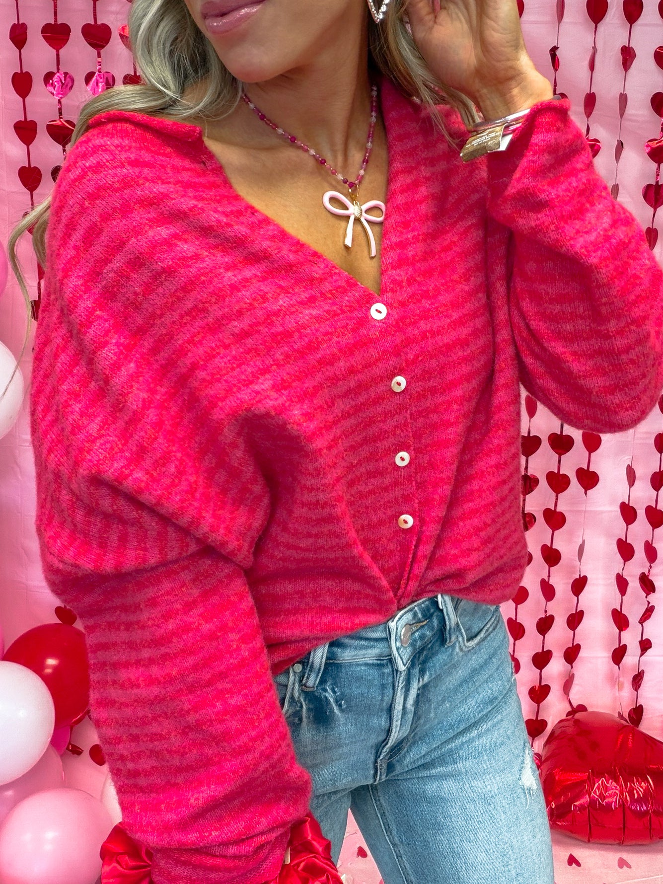 Add a pop of charm to your everyday look with the Lucky Stripe Cardigan. Featuring bold green and white stripes with soft, cozy texture, this button-up knit is as comfy as it is cute. Effortlessly pairs with denim, trousers, or a simple tank for that laid-back, lucky-girl energy.